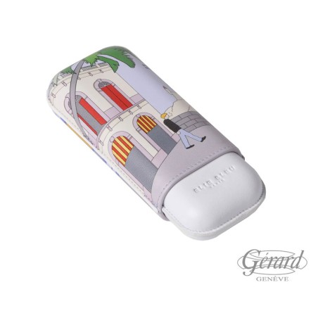 Etui en cuir imprimé aux couleurs de Cuba pour 2 cigares.